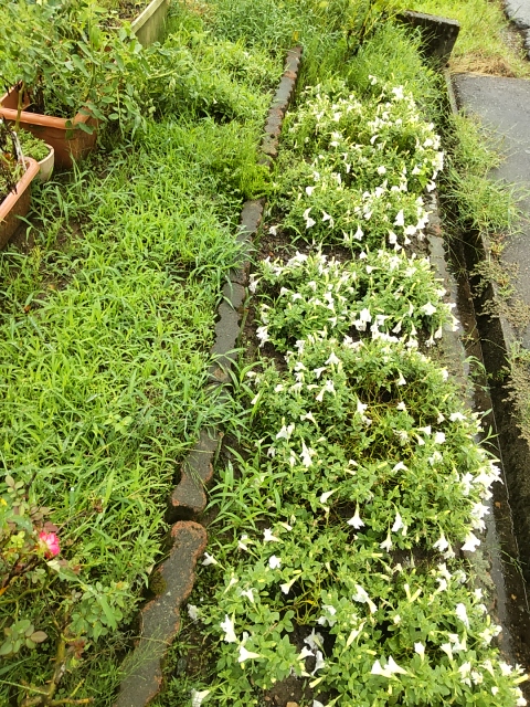 花壇のペチュニアもしょぼん…(´・ω・`)