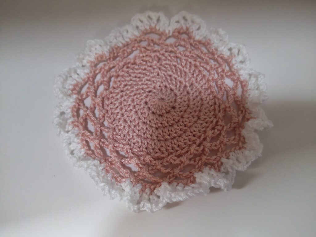 花瓶敷が欲しかったので編んでみたんですが、最近流行りのブーケコースターみたいに周りに花を編んでみようと思ったけれど、なんだか違う…