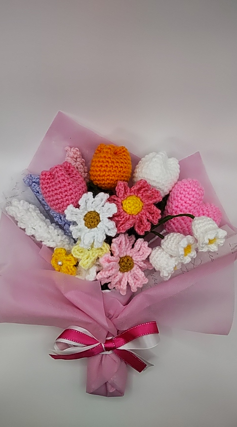 やっと仕上がった開運カラーの枯れない花/毛糸の花束!🌷