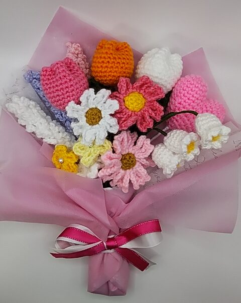 やっと仕上がった開運カラーの枯れない花/毛糸の花束!🌷