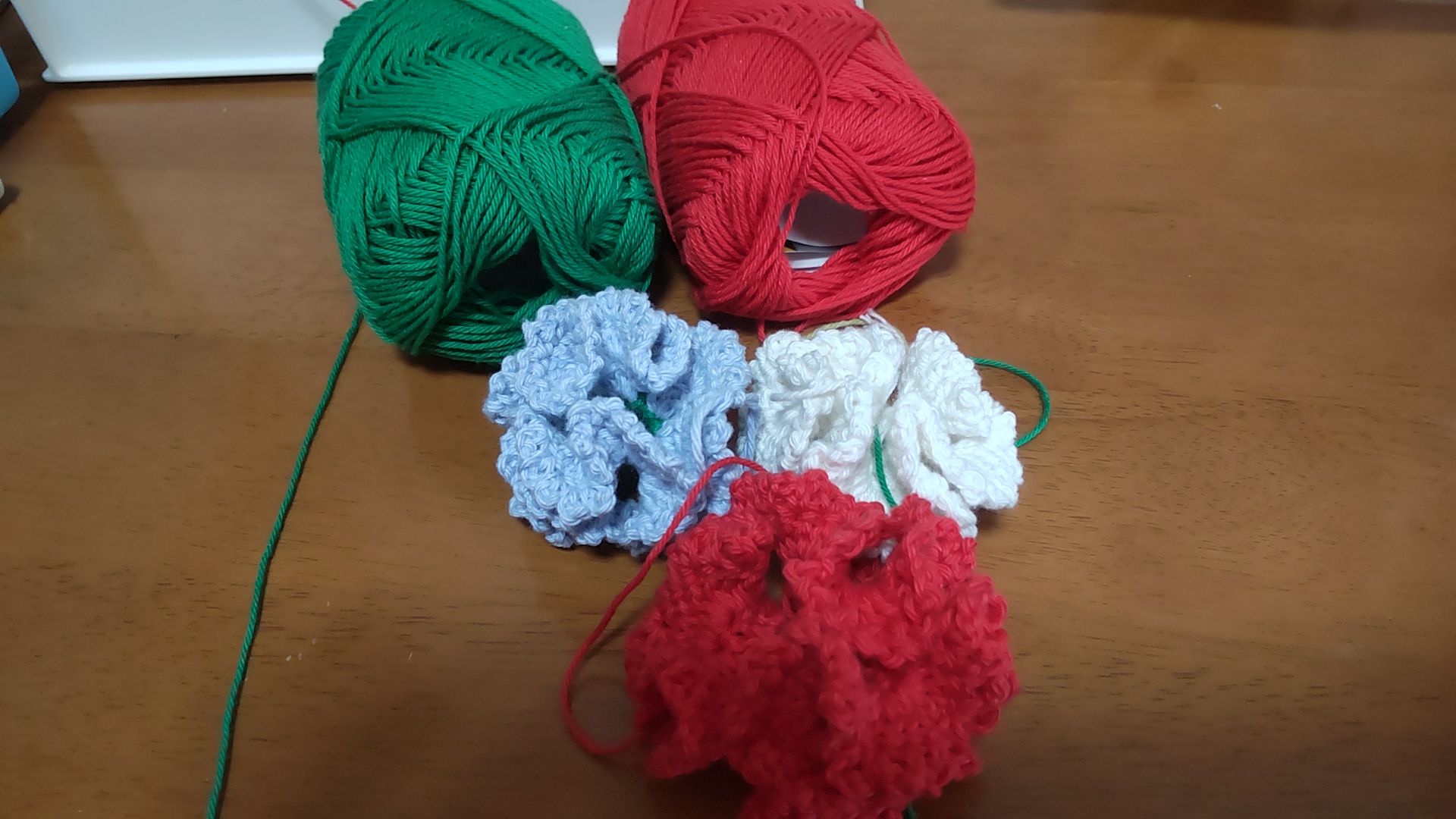 母の日に向けて、コットン糸でカーネーションを編んでいるんだけど、どうもイマイチしっくりこない感💦