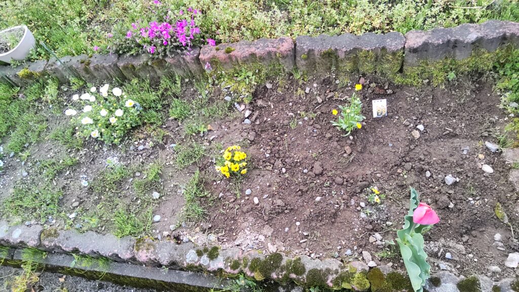 ということで、とりあえず、花を植えれるように最低限草むしりを…と思ったのですが、雨の日が続き、裏の花壇の草むしりは中途半端😓