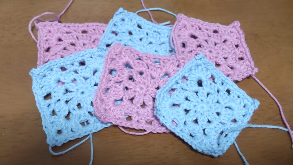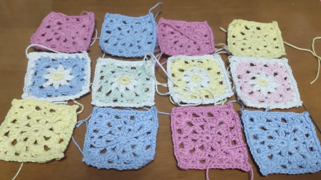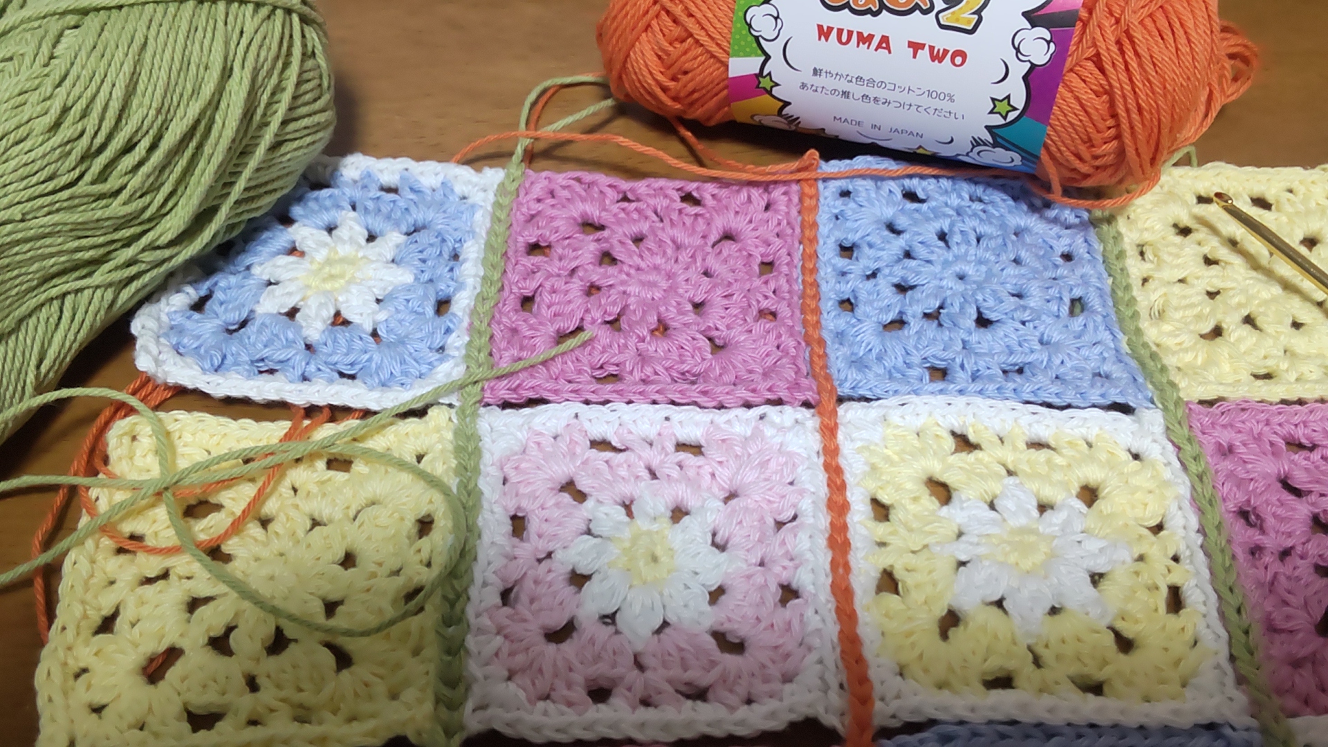 ちょっと色を変えたモチーフも編んでみて取り合えずここまで来た😓